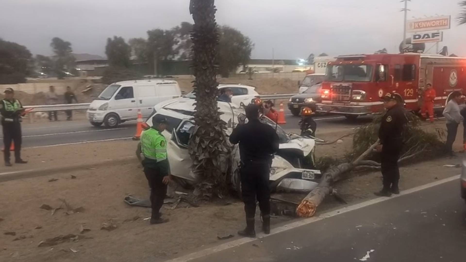 En el vídeo que registró el reportero ciudadano del Rotafono se observa que un vehículo de color blanco impacto contra una palmera, ubicado en la berma central de la Panamericana Sur.